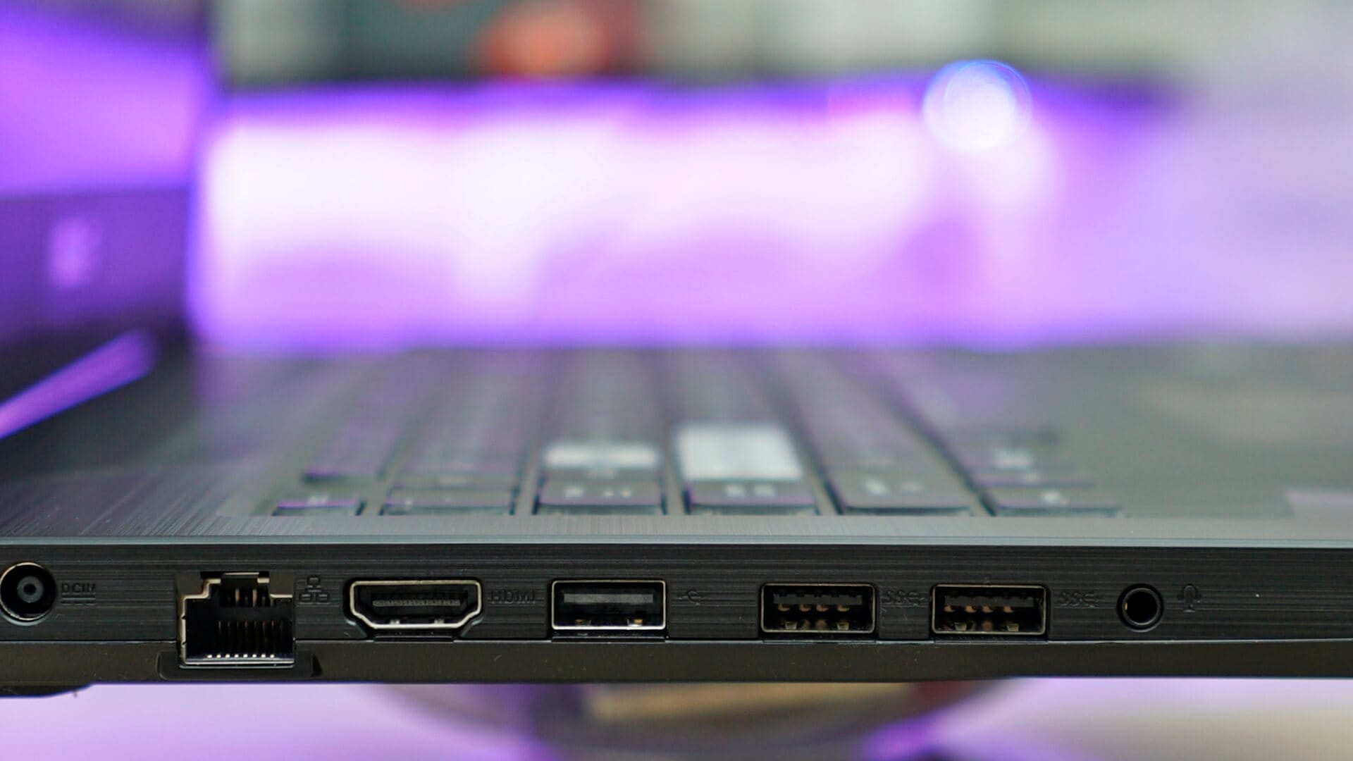 Tasarım ile ilgili olarak son söylenebilecek şey, laptopun sahip olduğu giriş çıkışlar. Bu noktada biraz cimri davranan ASUS, cihazın sadece sol kısmını bu yuvalar için ayırmış. Yuvalar ise sırasıyla şarj girişi, LAN portu, HDMI çıkışı, üç adet USB portu ve mikrofonlu kulaklık jackından oluşuyor. Gözümüz sağ kenarda da fazladan birkaç USB bağlantı noktası aradı ancak ASUS, bu kısmı soğutma amacı ile kapatmış durumda.