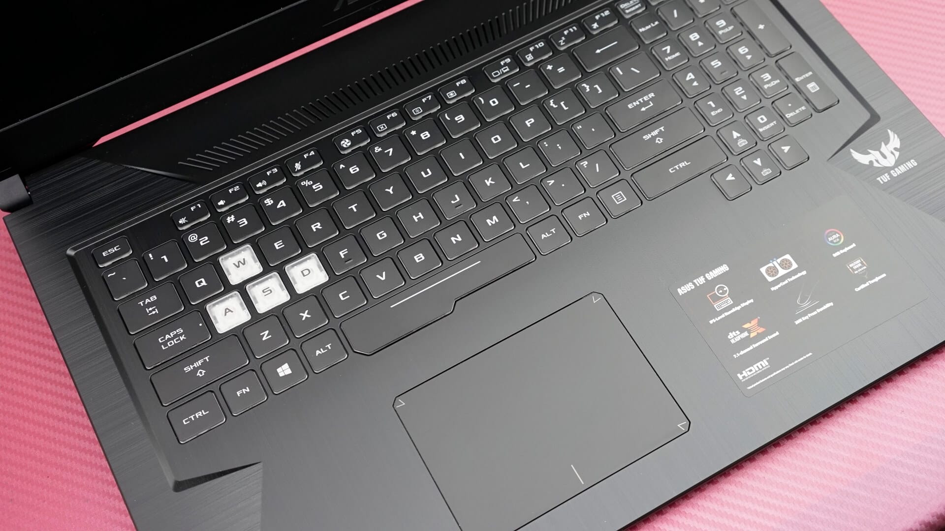Klavye tarafında da düşük profil tuşlara sahip olan FX705, her ne kadar tuşlarının altında mekanik anahtarlar konumlandırmıyor olsa da, yakın deneyim sunan düşük gecikme değerli tuş tasarımını kullanıyor. ASUS'un Overtroke adını verdiği bu tuş tasarımında her bir tuş, sadece 63g düzeyinde bir baskı ile bile çalışarak hem rahat hem de hızlı tepkimeler sunuyor. Tuşların 20 milyon tık ömrüne sahip olduğunu da ekleyelim.