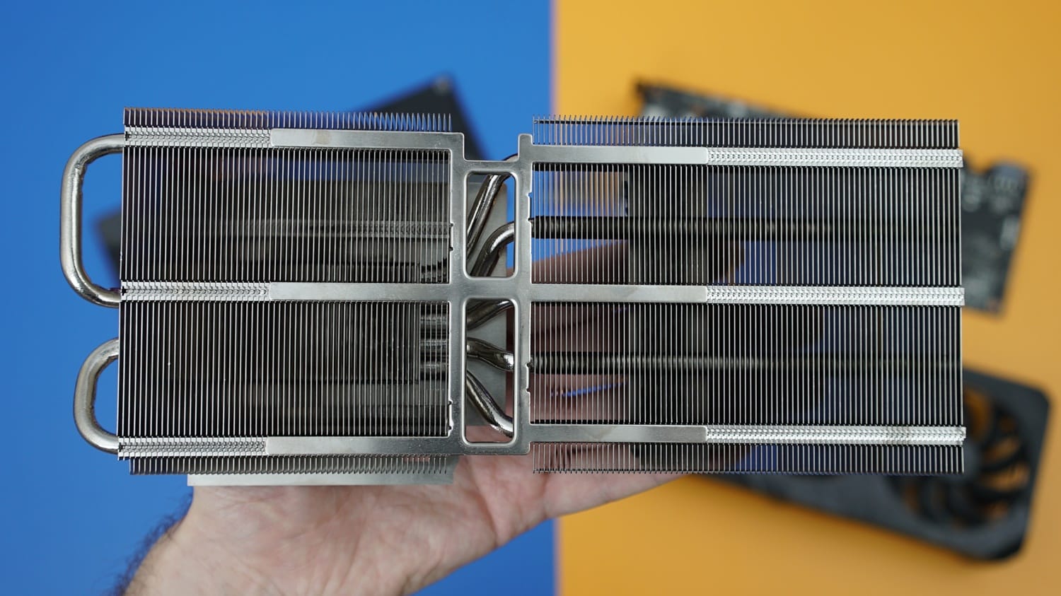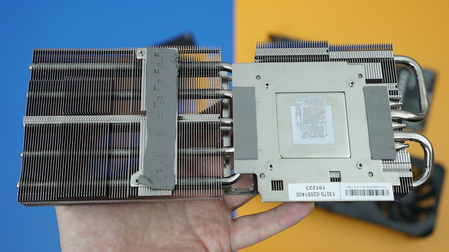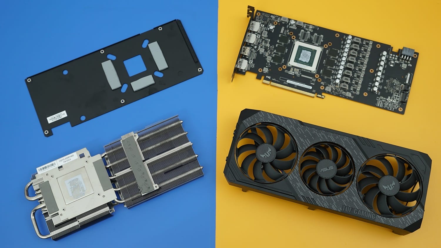 Bu değişiklikleri daha iyi anlamak için kartı dört parçaya ayırdık. Kart, soğutmaya destek sunan arka plaka, PCB, soğutma blokları ve üçlü soğutma fanlarından oluşuyor. Bu noktada arka plaka ve PCB tasarımında herhangi bir değişiklik görülmezken, asıl değişikliğin soğutma bloklarında ve fanlarda yapıldığını görüyoruz.