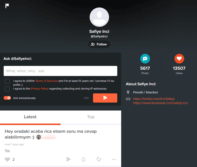 Ayrıca Google'da ufak bir araştırma yaptığınızda bu kişi hakkında Ask.fm üzerinden geçen sene sorulan soruları ve verdiği cevapları da görebiliyorsunuz. Sanırım özet için, bu bile yeterli diye düşünüyorum.