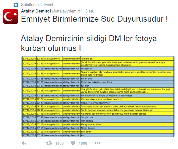 Ünlü stand-upçı Atalay Demirci'nin twitter hesabını Ayyıldız TİM hackleyerek peş peşe bildiri yayınlamaya başladı. Ayyıldız TİM tarafından yayınlanan bildirilere göre FETÖ'cu olduğuna dair pek çok bilgi yayınlandı ve yayınlanmaya da devam ediyor.