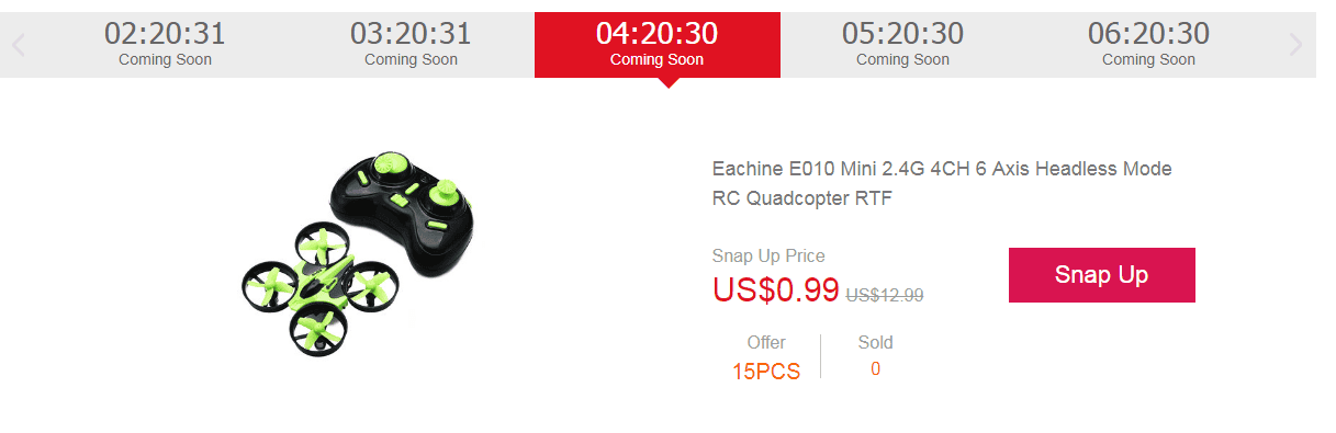 Önemli Not: Adamlar sitede şöyle bir kampanya yapmış hocalar. İlk önce Banggood.com'a üye oluyorsunuz. Sonra profil bilgilerinizi tamamen dolduruyorsunuz ve kampanya sayfasına gidiyorsunuz. Bu sayfada 'Snap Up' diyerek ürünü takip listenize alıyorsunuz. Sonra kampanyanın süresinin bitmesine 1 dakika kala sayfayı yenileyip ürünü 1 dolara alabiliyorsunuz.