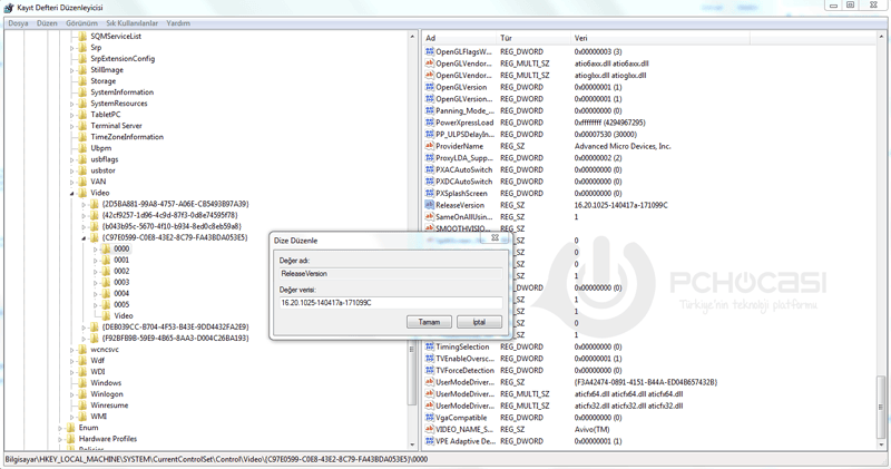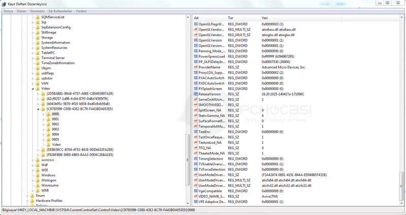 2-) Ardından Control seçeneğinin altında Video ❱ "C97E0599" ile başlayan bir kodun içine veya herhangi bir kodun içine gelerek "0000" seçeneğini bulun. Hemen ardından "Release Version" u bulun.