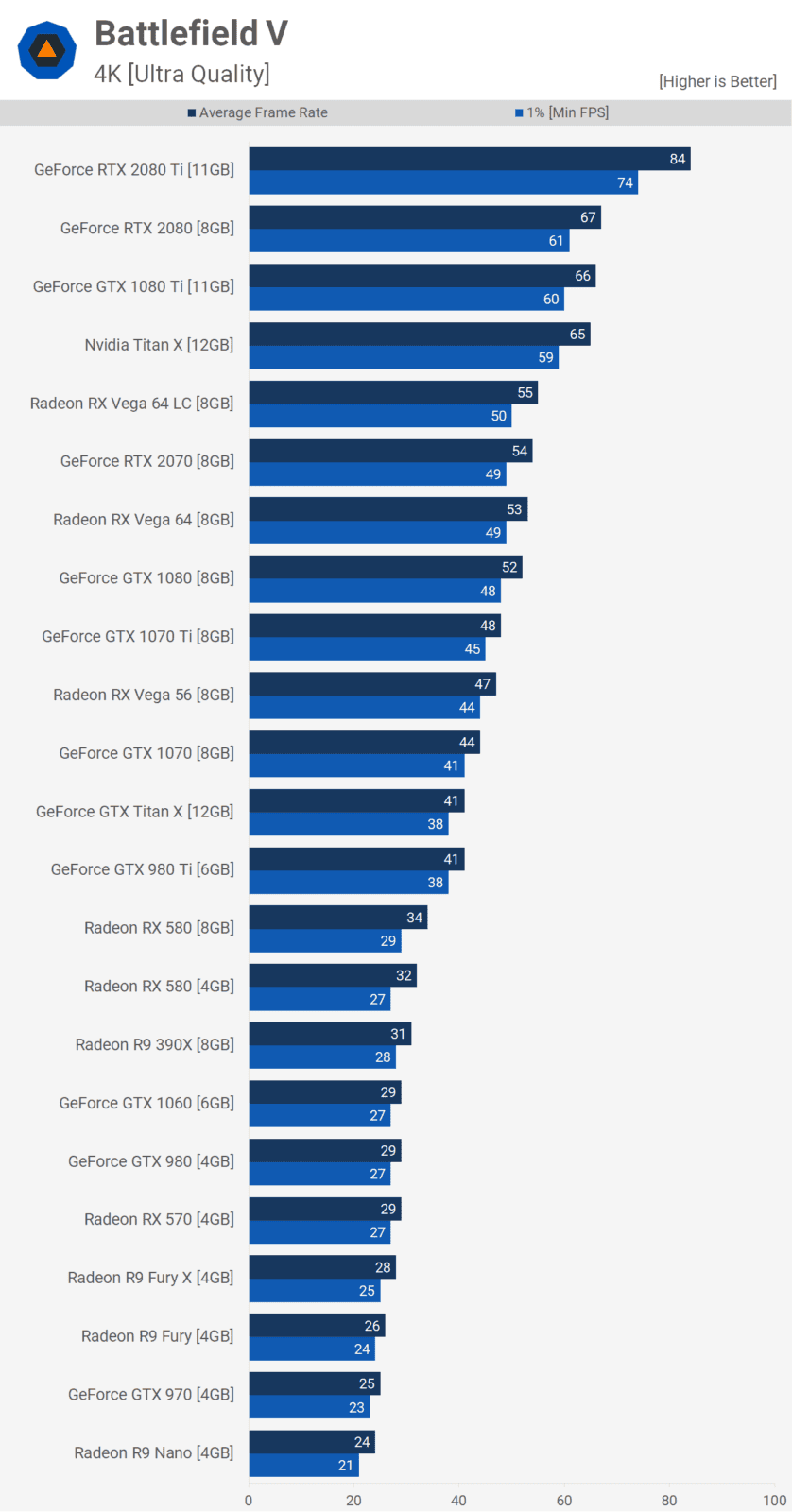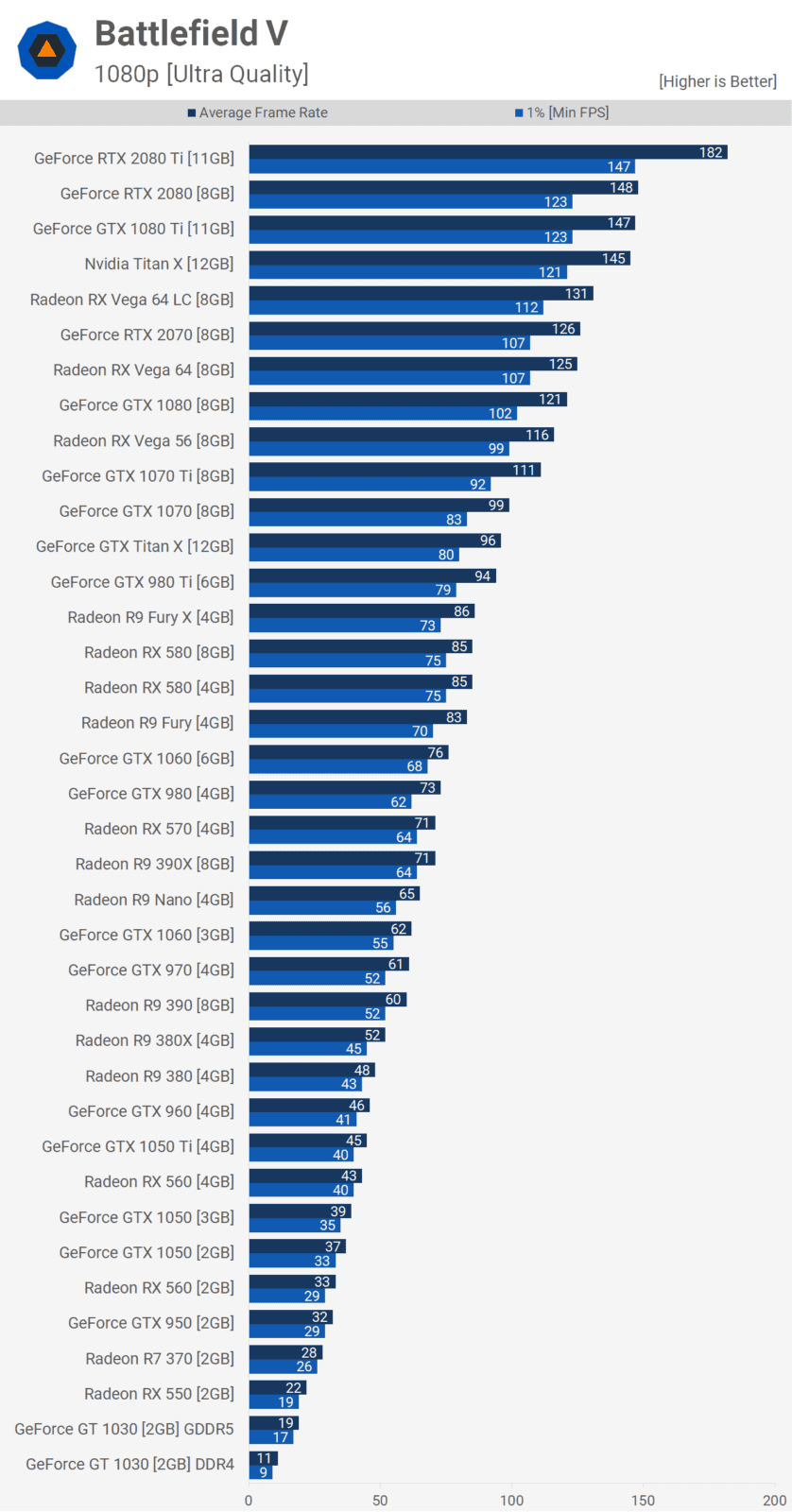 Hepimizin evlerinde bir bilgisayar bulunuyor olsa da çok azımız üst düzey performans sunan parçalara sahibiz. Bu yüzden yeni bir oyun çıktığında dikkat ettiğimiz ilk şey oyunun sistem gereksinimleri ve sahip olduğumuz donanımda ne kadar FPS değeri sunacağı. İşte oyuncuları düşünen TechSpot, 38 farklı ekran kartını bir araya getirerek, Battlefield 5'i 1080p, 2K ve 4K çözünürlüklerde test etti.