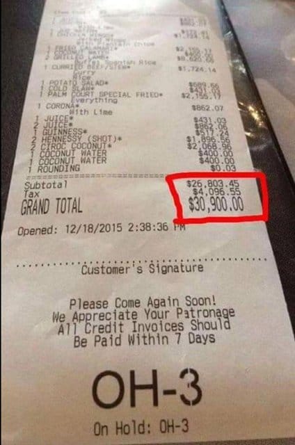 TOPLAM: 30 bin 900 dolar yani Türk Lirası ile 90 bin 850 TL'ye tekabül ediyor. Açıkçası bir akşam yemeğinin bu kadar pahalıya patlaması Sosyal Medya'da "bunlar neyin kafası" yorumlarının yapılmasına neden oldu.