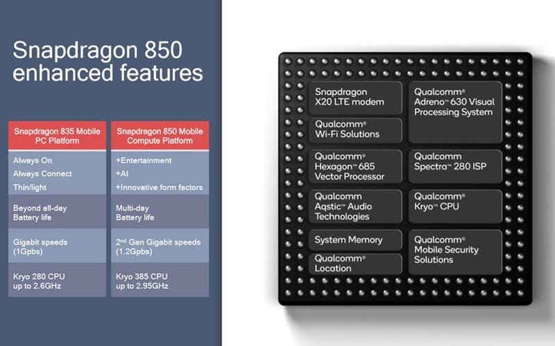 Windows işletim sistemli bilgisayarlar ve tabletler için geliştirilen Snapdragon 850, LTE üzerinden sürekli internete erişim sağlıyor. Yine Snapdragon 835’te olduğu gibi 10nm üretim sürecinde tasarlandı. Ancak Snapdragon 835’e nazaran daha hızlı, daha performanslı ve daha stabil çalışacak.