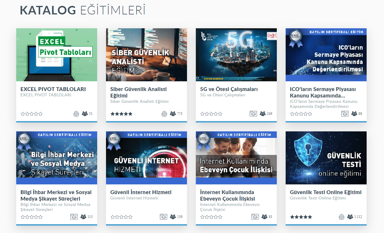 Eğitim platformundan erişebileceğiniz diğer eğitimler ve konular