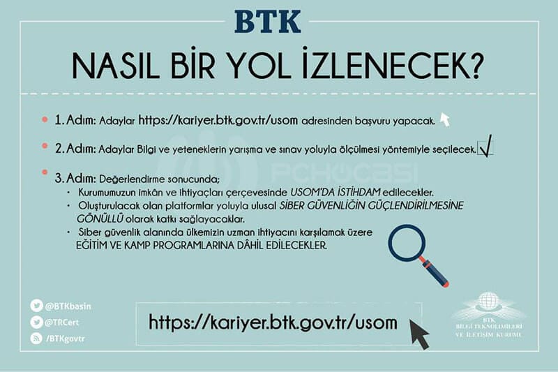 Şimdi şöyle bir durum var arkadaşlar; geçtiğimiz hafta sizlere nasıl başvuru yapacağınız hakkında ufak bir rehber hazırlamıştık. Sonrasında sosyal medya üzerinden "arkadaş ülkede gençler kendini nasıl geliştirsin ?, adamlar yetişmiş elemanlar arıyorlar bir de." yorumları yapılmıştı. Ancak bu tür yorumlara katılmadığımızı belirtmek isterim. Ülkemizde kendisini geliştirmiş, yetenekleri ile yapamayacağı işler bulunmaya canavar gibi gençler bulunuyor. Bu sadece siber saldırılar için geçerli değil. Bir insan beyni ile hareket eder. Beyin kavramı o kadar geniş ki, neyin nasıl yapıldığından ziyade, nasıl ilerleyeceğinin yolunu çizebilenler var bu ülkede. O yüzden BTK tarafından açılan siber güvenlik ekibi için kadro kurulduğunda "hayde gelin geçler oturun burda bizi savunun" denilmeyecek elbette.