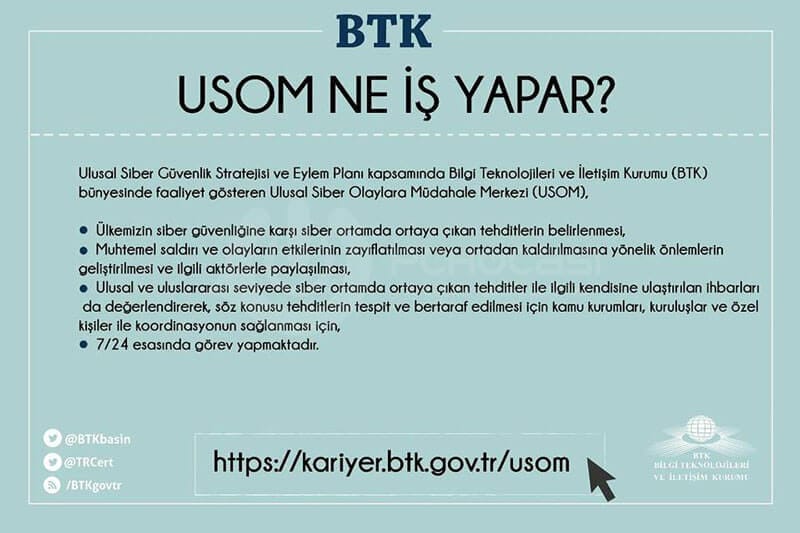 Geçtiğimiz hafta Bilgi Teknolojileri ve İletişim Kurumu (BTK) tarafından yayınlanan bildirimde Türkiye'de siber güvenlik ekibi kurulacağı konusunda açıklamalar yapılmış ve Türk gençliğini bu konuya duyarlı olarak başvurularda bulunmalarını istemişti. Şimdi ise resmi başvuru yolu açılmış oldu.