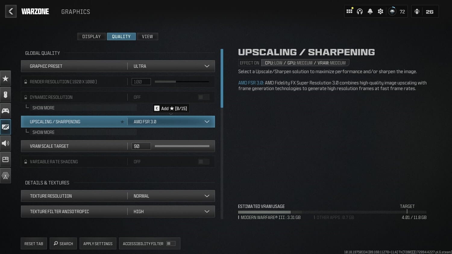 AMD FSR 3.0 olduğunu görüyoruz. Yakında burası