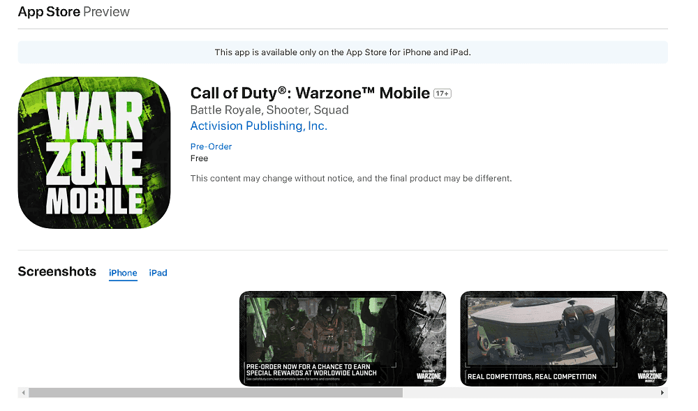 Call of Duty Warzone Mobile için App Store ve Google Play Sayfaları Açıldı
