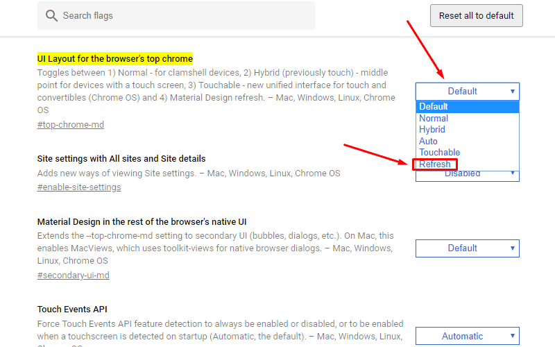 - Adres çubuğuna "chrome://flags/#top-chrome-md" yazarak ilgili ayara gidin.