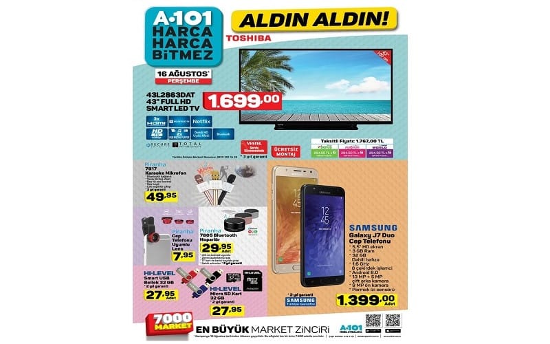 Perakende satış mağazası zinciri A101; güncel özelliklerle donatılmış, kullanıcı dostu elektronik ürünler satmaya devam ediyor. Önümüzdeki hafta içerisinde akıllı cep telefonu satın almayı düşünen kullanıcılara hitap eder nitelikte bir kampanya ile gündeme gelen mağaza, çift ana kamerası ile öne çıkan Samsung Galaxy J7 Duo isimli akıllı cep telefonunu satışa çıkarmaya hazırlanıyor.