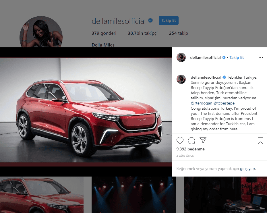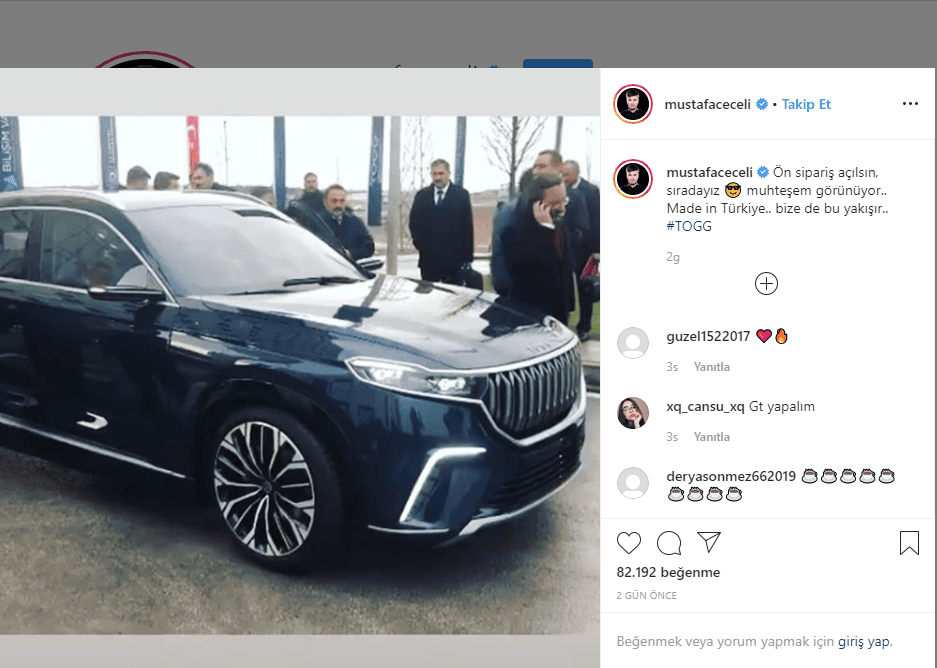 yerli otomobil ön sipariş haberleri gelmeye başladı. İlk önce Mustafa Ceceli Instagram hesabından