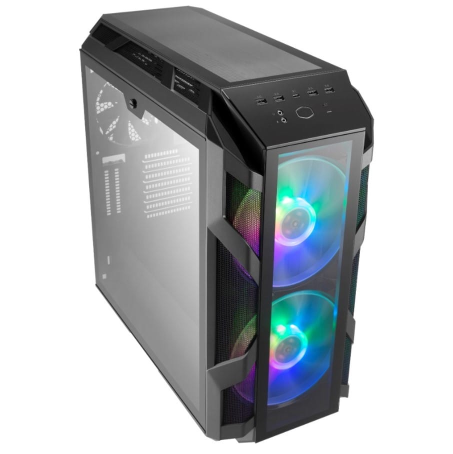 Izgaralı ön paneli ve cam yan paneli ile maksimum hava akışı ve estetik arasında seçim yapmak zorunda kalmayacağınız MasterCase H500M, H serisinin en üst segment ürünü olarak piyasaya çıkıyor. Yerleşik olarak gelen iki yan ve üst temperli cam paneli ile sisteminize maksimum görünüş sağlanırken, ön paneled ızgaralı ve temperli cam panel seçimi tamamen size kalmış. Yerleşik olarak gelen ön ızgaralı paneli, dilerseniz kutu içeriğinden çıkan temperli cam panel ile değiştirebilirsiniz. Ön panelde bulunan 2 adet 200mm adreslenebilir RGB fanları, kasaya yerleşik olarak gelen RGB kontrolcüsü ile kontrol etme imkanına sahipsiniz!