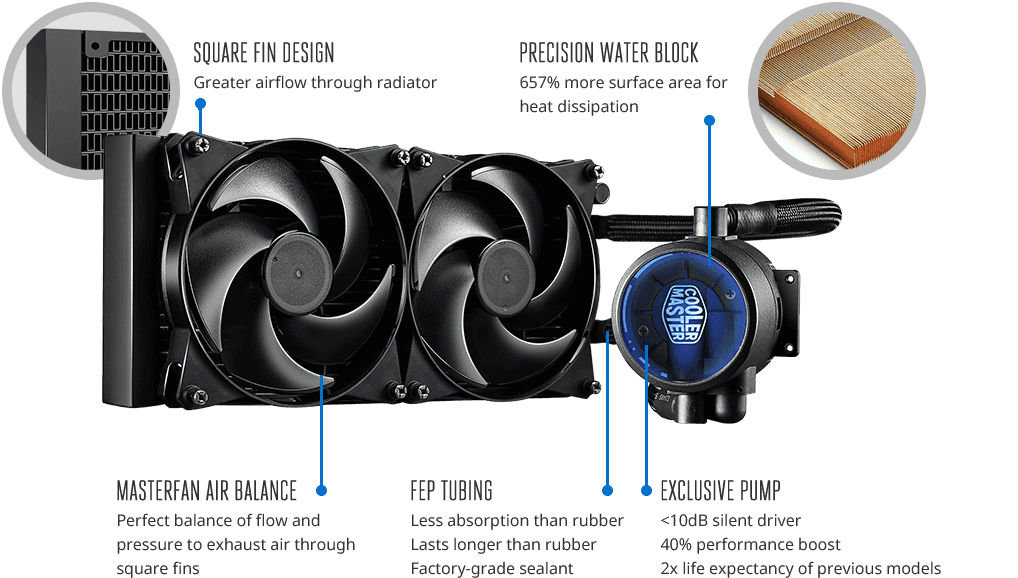 CoolerMaster 2017'nin ilk çeyreğinde piyasaya sürmüş olduğu 280 mm'lik radyatörü pazardaki yerini hızla almaya devam ederken, 280 mm AIO'lar ile kıyasla 240 mm'lik AIO'ların daha bir tatlı olduğunun altını çizelim. Neden diyecek olursanız detaylara yakından göz atınca daha net anlayacağız.