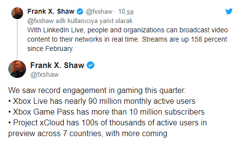Bunların yanında ise yeni bulut sistemi olan Project xCloud'ın, 100 binden fazla aktif kullanıcıyı bünyesinde barındırdığını görüyoruz. Frank Shaw, Project xCloud'ın yakında daha çok ülkeye yayılacağını da belirtti.