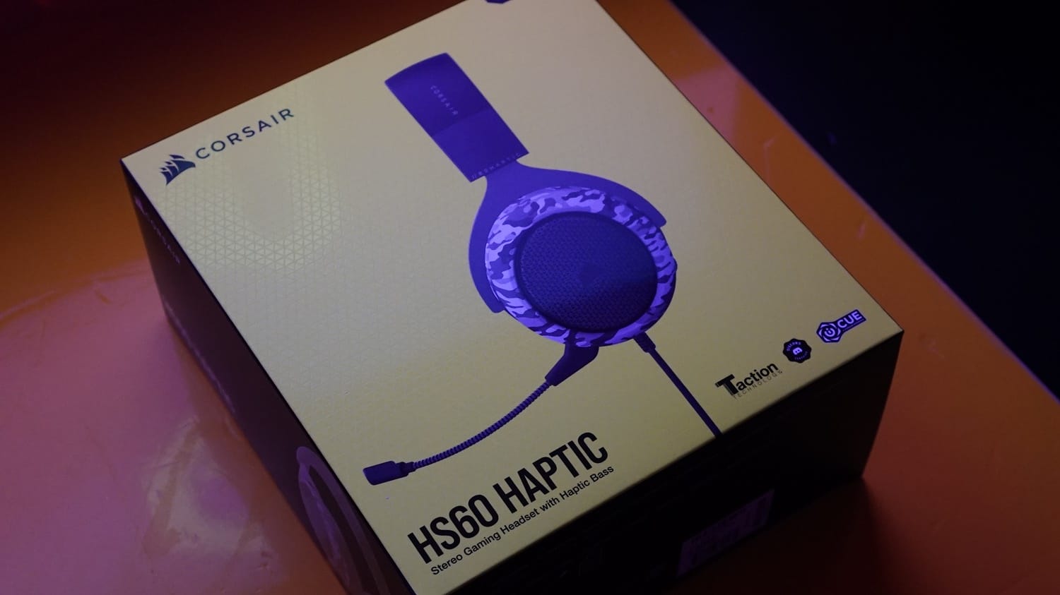 Corsair HS60 Haptic 7.1 kutusu ile birlikte masamıza geldiğinde alışkın olduğumuz kutu tasarımı görüyoruz. Yine sarı renkli kutu üzerinde ürünün resmi ve ürün hakkında bilgilendirici metinler kutunun üzerine işlenmiş. Ürün kutusunu açtığımızda ise kulaklığın kendisi, mikrofon, bağlantı için örgülü 1.8m USB kablo ve kullanım belgeleri ile karşılaşıyoruz.