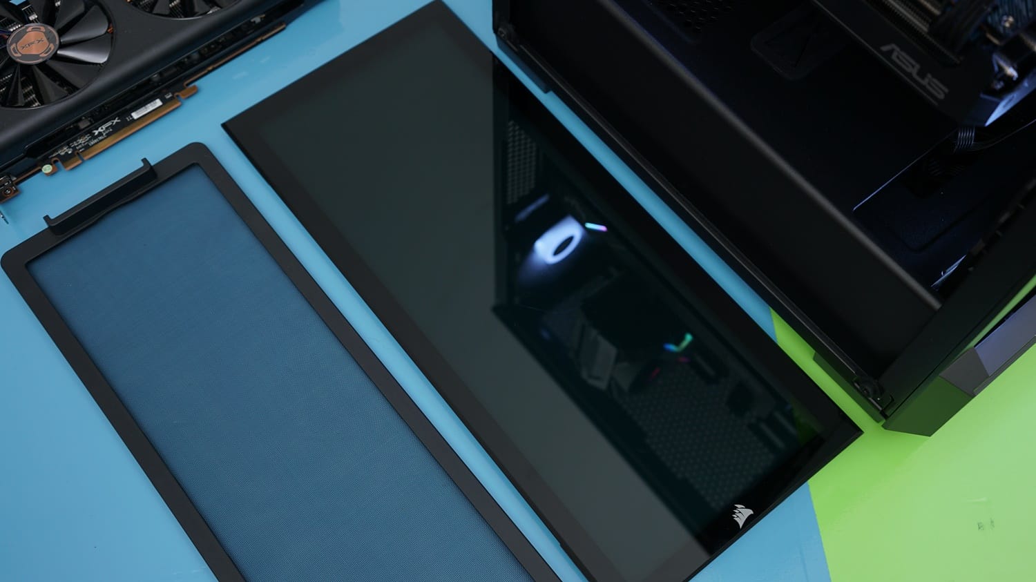 Ön panelde bulunan temperli camın hemen altında tozları tutması için eklenmiş mesh bir panel bulunuyor. Üstelik bu toz tutucu mesh panel sadece ön bölümde değil, üst fan ve alt PSU yuvalarında da bulunmakta.