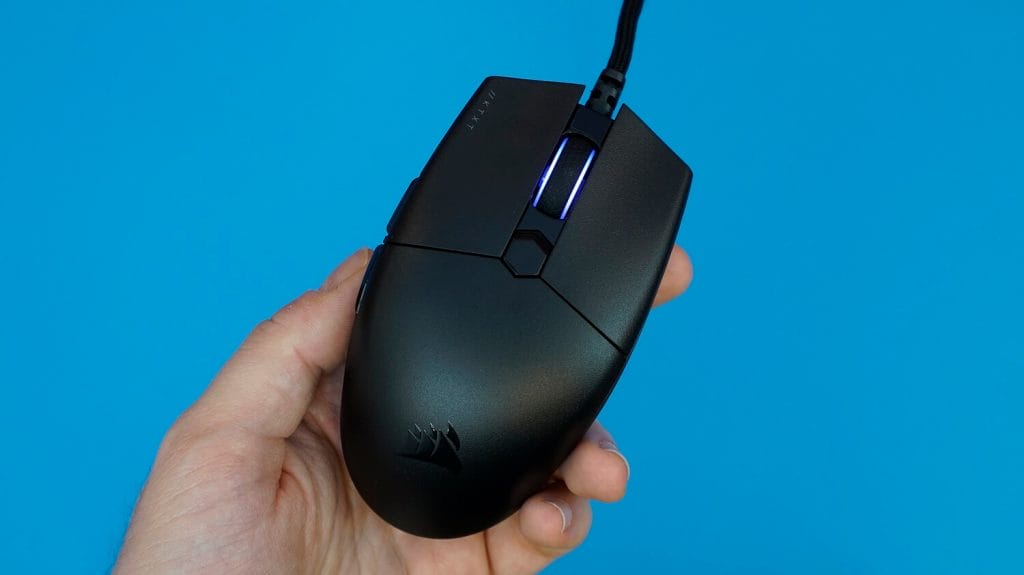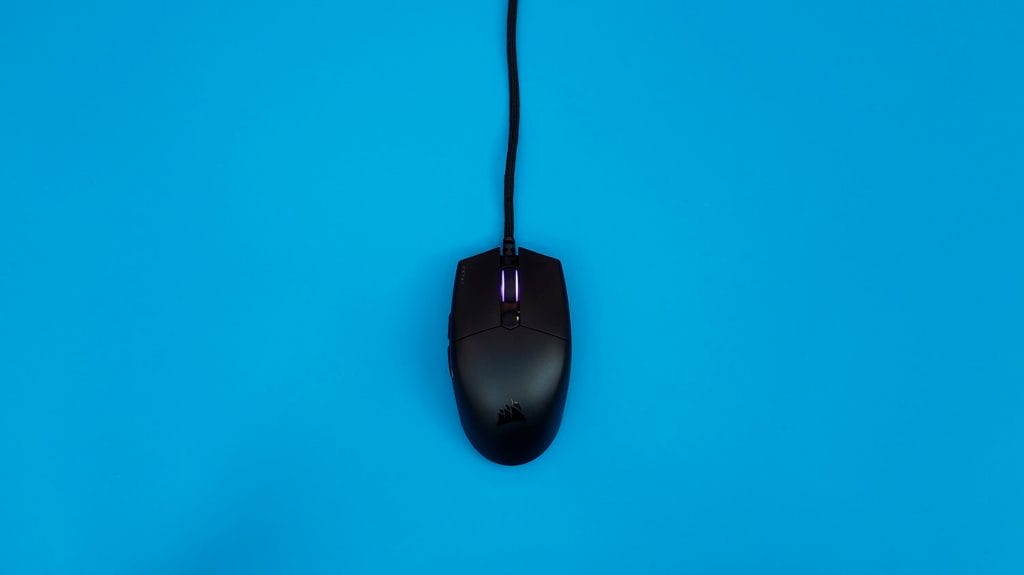 Ürünün üzerinde tek bölge RGB aydınlatma yer alıyor. iCUE yazılımı üzerinden bu RGB aydınlatmaya müdahale edebiliyorsunuz. Genel anlamda sert plastikten üretilmiş bir model, 6 adet tuşa sahip.
