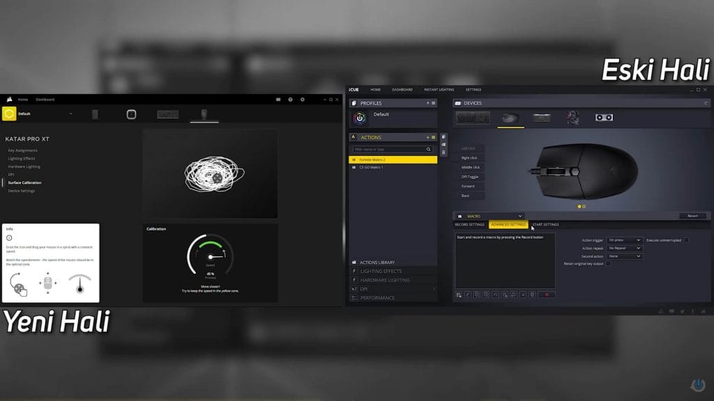 iCUE yazılımını indirdikten sonra ürünün tıklamalarını, RGB aydınlatma efektlerini, DPI ayarlarını ve kalibrasyonları gerçekleştirebiliyorsunuz. Ürünü kullanmadan önce bizce yapmanız gereken ilk şey kalibrasyon yapmak diye düşünüyoruz.