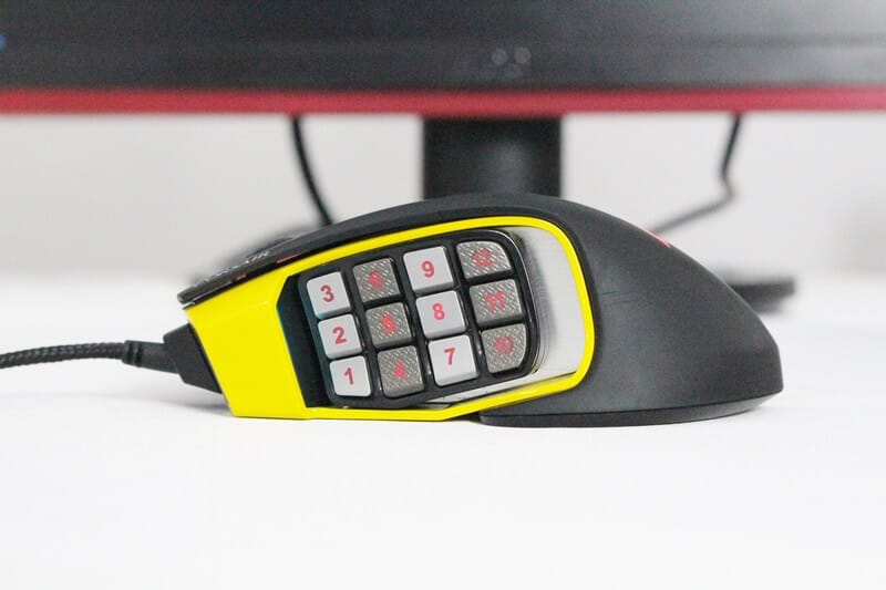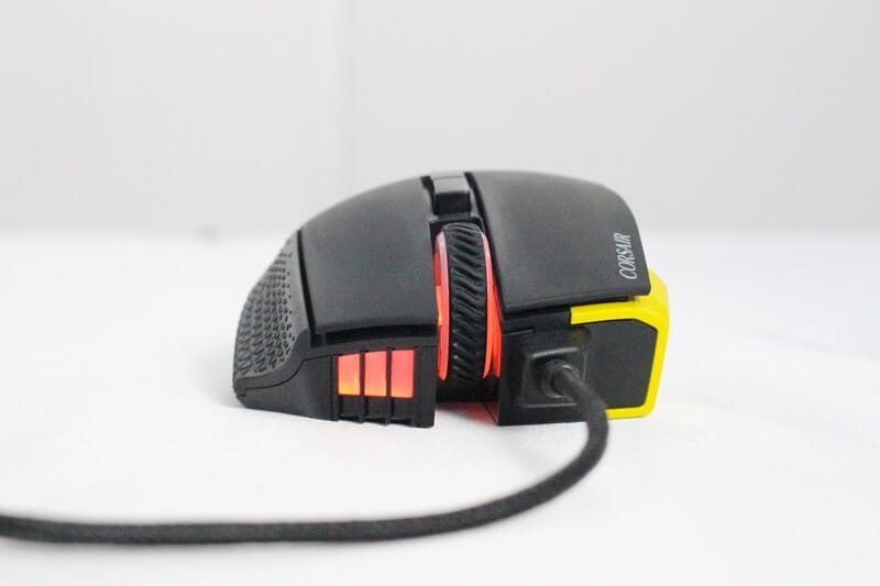 Sarı ve siyah alaşımlı ele oturan yüzeyi ile birlikte gelen Corsair Scimitar RGB mouse, lazer okuma, 1.8 metre kablo uzunluğu ve sol tarafta bulunan makro atama tuşları ile ön plana çıkıyor. Genellikle orta ölçekli ele sahip olan oyuncular için ideal diyebileceğimiz bu mouse, renk arayüzü ile de mükemmel kombinasyonlar sunuyor.