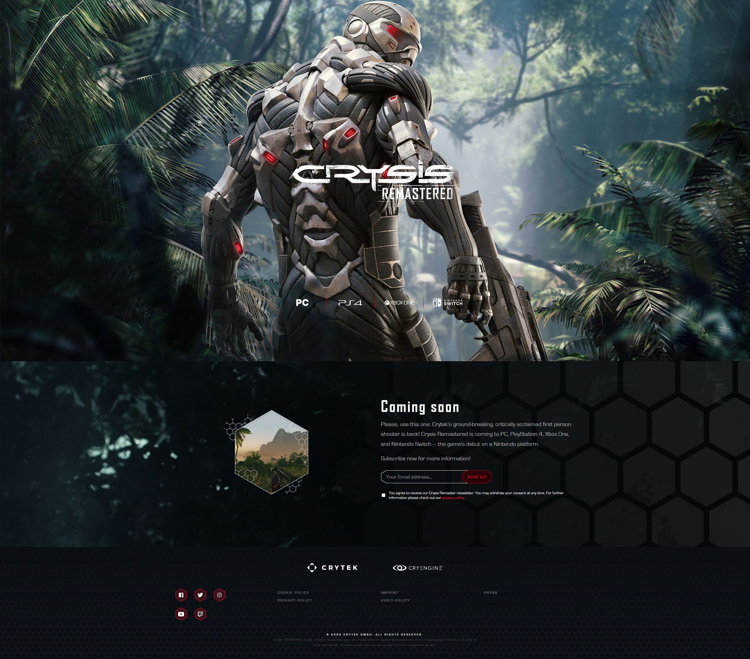 CLOAK DISENGAGED You’ve been asking. You’ve been waiting. Today, that wait is over. It’s coming: Crysis Remastered on PC, PlayStation 4, Xbox One, and – for the very first time on the Nintendo Switch Platform.https://t.co/2JnfyC7jRE pic.twitter.com/NWAHdoBEgD