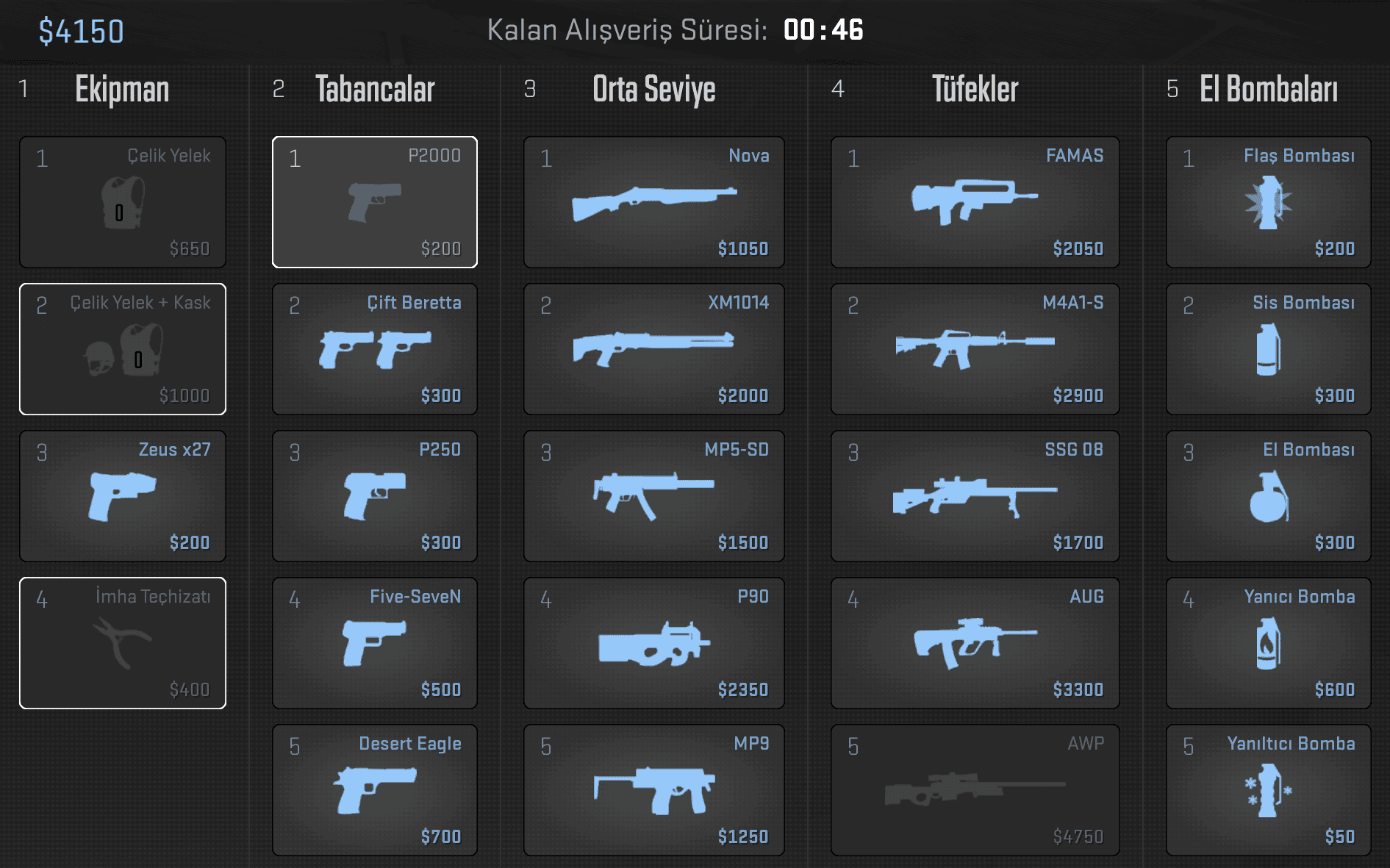 Oyun içi tasarımlarda da büyük değişiklikler mevcut oyun içi satın alma menüsünün değiştirilmesi CS:GO’ ya kıyasla daha albenisi yüksek sade ve basit hale getirildi.