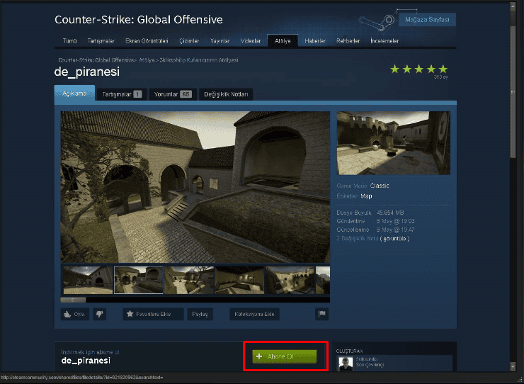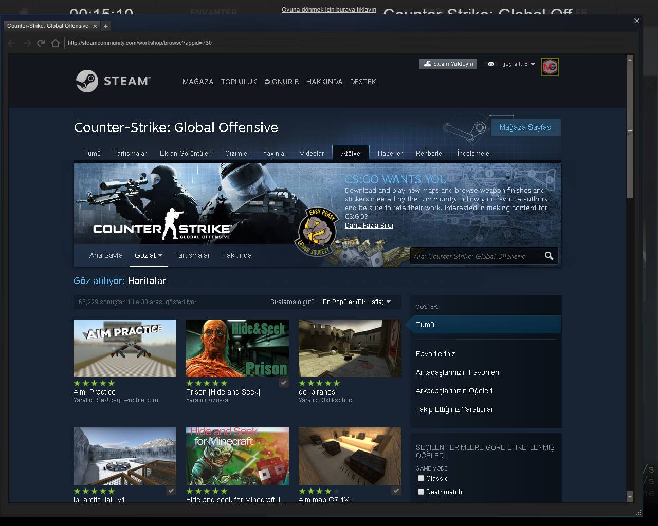 ❱ Atölyeyi Aç'a bastıktan sonra Steam Browser üzerinde aşağıdaki gibi sayfa açılacaktır. Buradan oynamak istediğiniz mapi seçin.