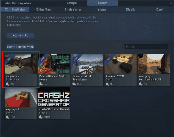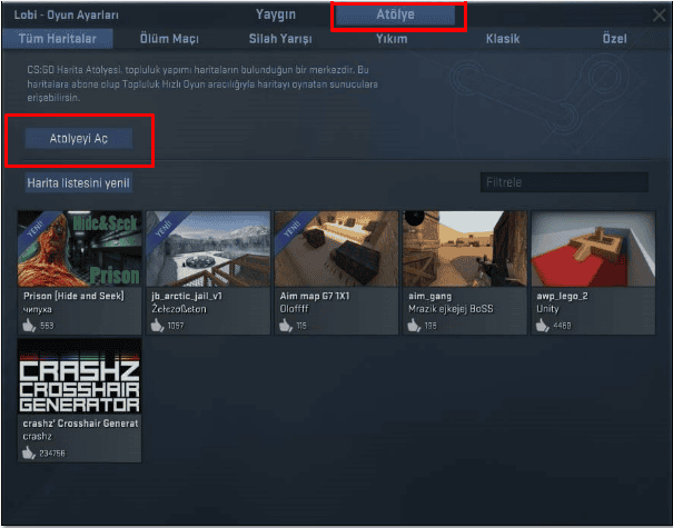 Atölye haritaları, birçok amaç için farklı geliştiriciler tarafından hazırlanmış özel haritalardır. Aim geliştirmekten tutun Crosshair ayarlama kadar işimizi kolaylaştırmak üzere hazırlanmış yüzlerce hatta binlerce harita bulunmakta. Arkadaşlarınız ile klasik haritalardan sıkıldığınızda yeni bir şeyler denemek içinde bu haritaları kullanabilir, binlerce harita arasından yeni haritalar keşfedebilirsiniz. Peki atölye haritasını nasıl yükleyeceğiz ?