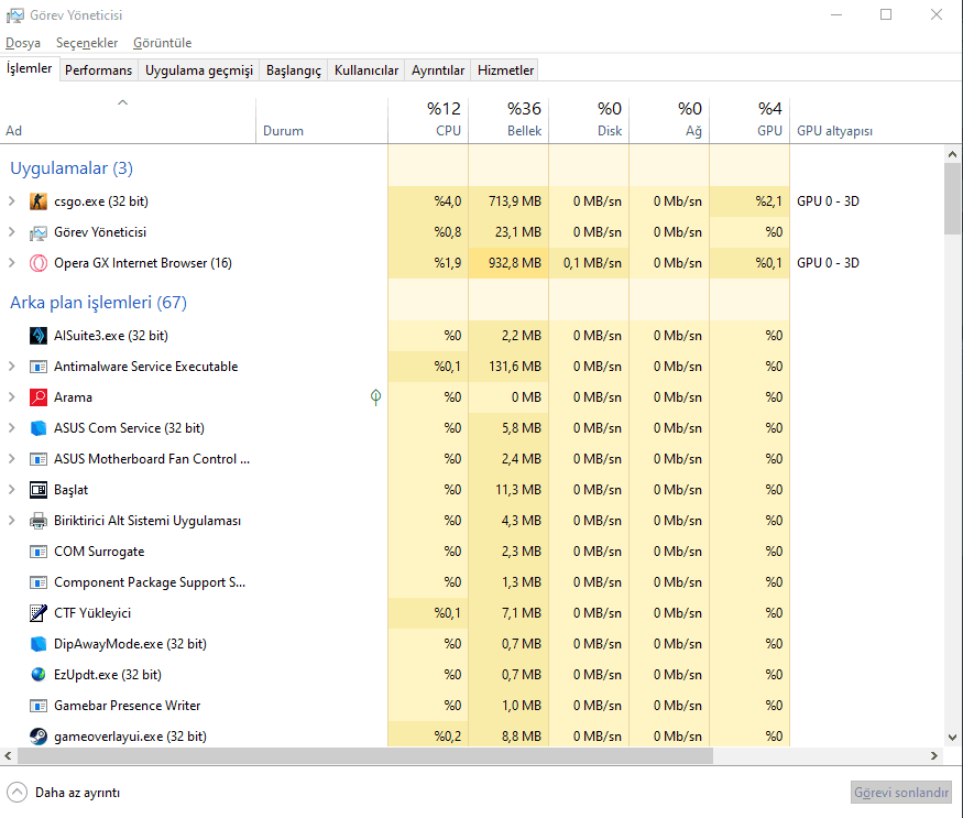 Not: Sizde CPU sayısı değişiklik gösterebilir, tamamen sahip olduğunuz bilgisayardan dolayı.