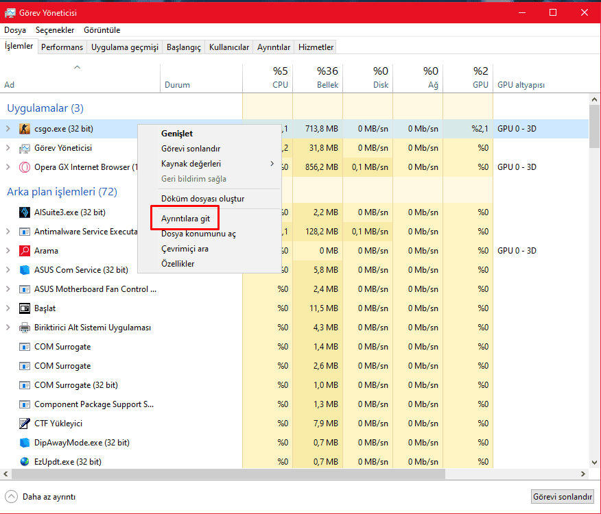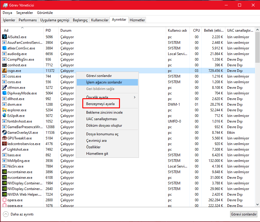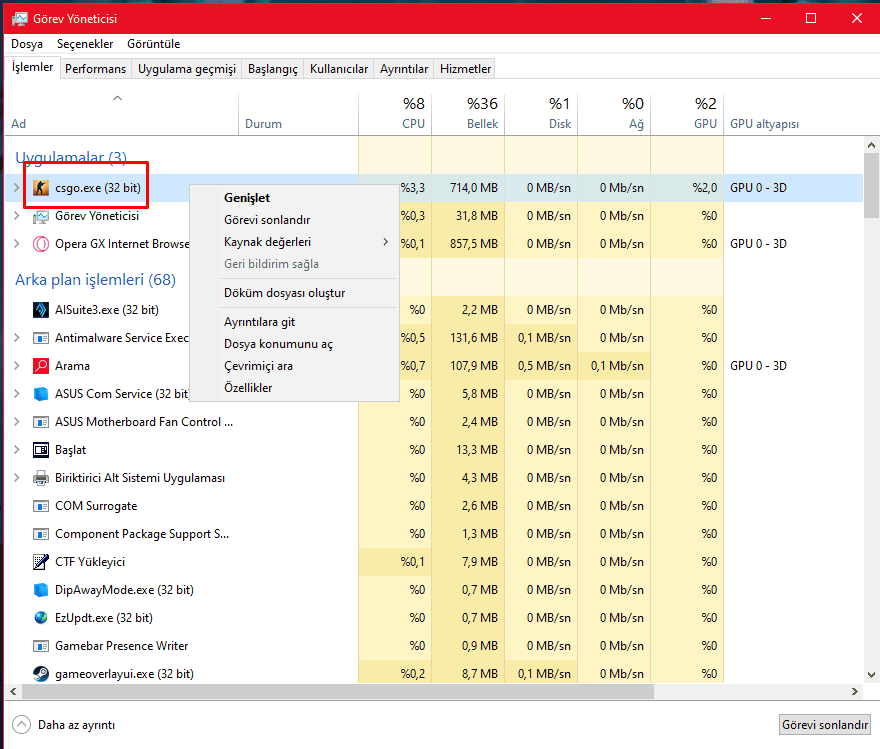csgo.exe” seçeneğine sağ tıklıyor ve “