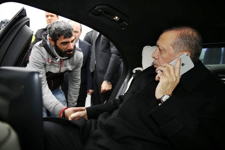 Dün İstanbul'da Boğaziçi Köprüsü'nden geçerken intihar etmek üzere olan Vezir Çatraş'ı Cuma namazından çıkan Cumhurbaşkanı Recep Tayyip Erdoğan konvoyu ile geçiş esnasında görmüş ve kişiyi intihardan vazgeçirmişti. Bu esnada makam aracının içerisinde iPhone 6S Plus akıllı telefonu fotoğraflanmıştı.