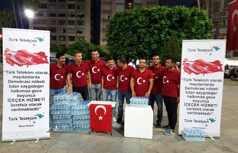 İlk olarak bayiler tarafından verilen destek ile Türk Telekom tüm meydanlarda vatandaşların faydalanabilmesi için ücretsiz olarak Wi-Fi hizmeti vereceğini duyurdu. Şuanda da ülkenin dört bir yanında devam eden demokrasi nöbetinde vatandaşlar kesintisiz olarak 7/24 Wi-Fi hizmetinden faydalanabilecek.