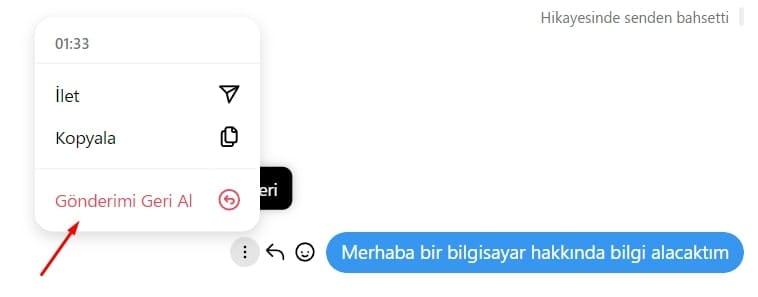 Bir mesajı attınız ancak sonra silmek istediniz, yapmanız gereken gönderdiğiniz mesajın üzerine