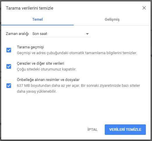 Google Chrome'un Geçmişi, Önbelleğe Alınmış Dosyaları, Çerezleri Temizleyin