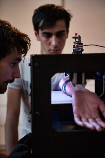 Fransız tasarımcı Pierre Emm, Johan da Silveira ve David Thomasson bir araya gelerek Autodesk üzerinde tasarlamış oldukları dünyanın ilk dövme yapabilen robotunu geliştirdiler. Robot sanayi tipi bir robot olduğu gibi, 3D yazıcı ile üretildi.