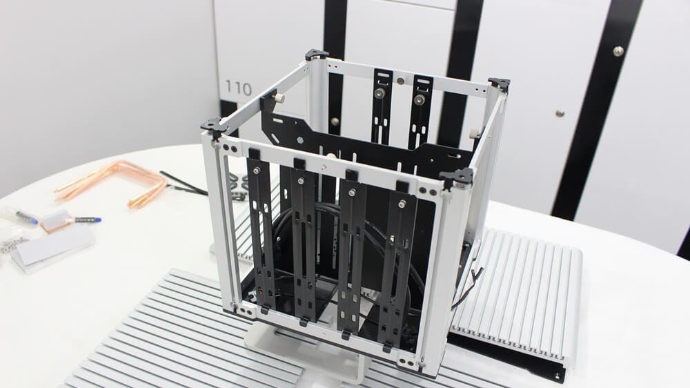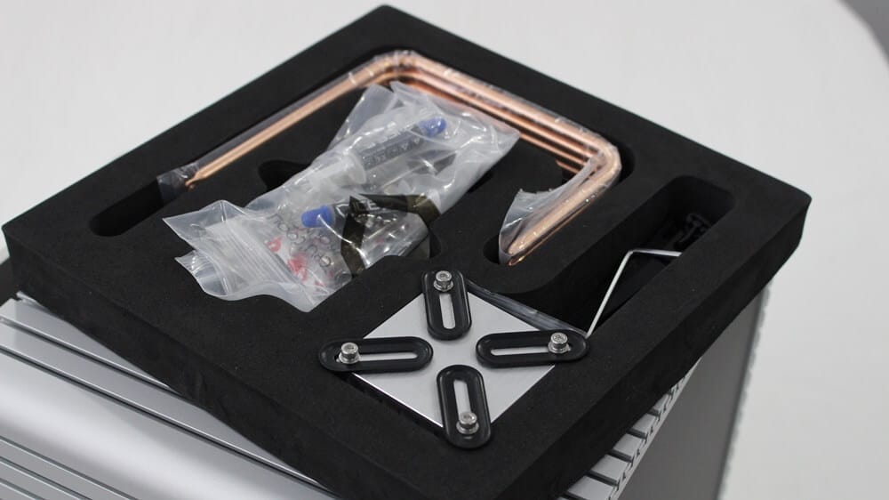 Firmanın geliştirdiği bu yenilikçi kasa ilginç durduğu gibi, içerisinde fan barındırmıyor. Normal standart kasalar ile kıyasladığımız zaman hem sessiz hem de daha stabil bir soğutma elde edilebiliyor. Kutunun içerisinden çıkan head pipe dediğimiz başlıklar ve bakır ısı boruları sayesinde anakarta dik olarak yerleştiriliyor. Sonrasında ısı boruları sayesinde kasayı çevreleyen borular soğutma işlemini sağlayabiliyor.