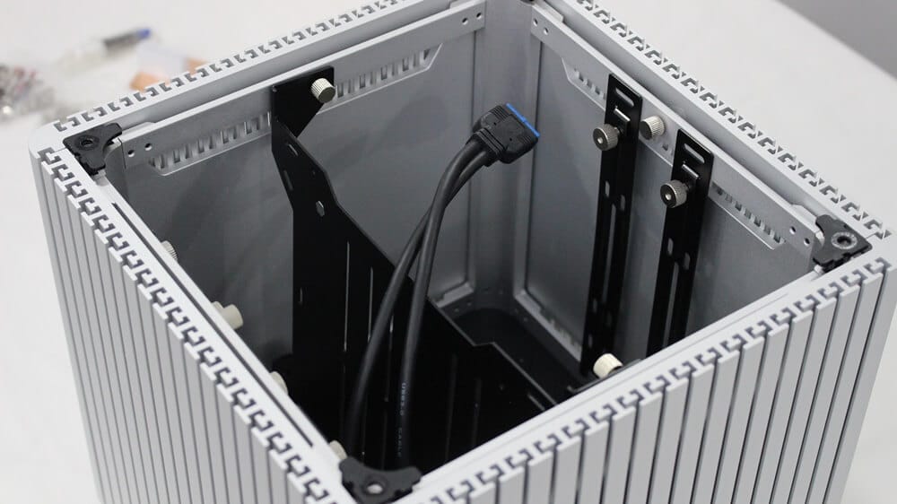 Dilerseniz kasanın tüm panellerini bir alyan yardımı ile vidalarını sökerek çıkartabiliyorsunuz. Sonrasında sizi kasanın iç iskeleti karşılıyor. Mini ITX bilgisayar sevenler için önemli bir gelişme olduğunun altını çizelim. Standart mini ITX kasalara göre masanızda da çok şık duracağının garantisini verebilirim :)