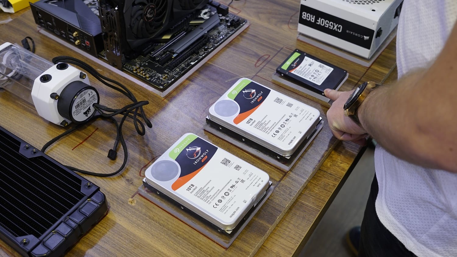 Sistemimizin depolama kanadında Seagate görüyoruz. Bu bölümde sistemimize iki farklı ürün dahil edeceğiz. İlk depolama birimimiz Seagate IronWolf 960GB SATA SSD NAS modeli. SSD, 560MB/s okuma ve 530MB/s yazma hızına sahip. NAS cihazlar için geliştirilen bu SSD, sürekli olarak açık kalmaya hazır hale getirildiği gibi 5 yıl garanti ile geliyor. Ayrıca içerdiği özel yazılım sayesinde de geniş kapsamlı yedekleme desteği sunuyor.
