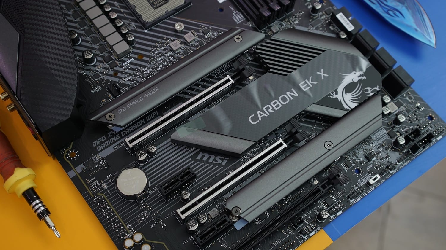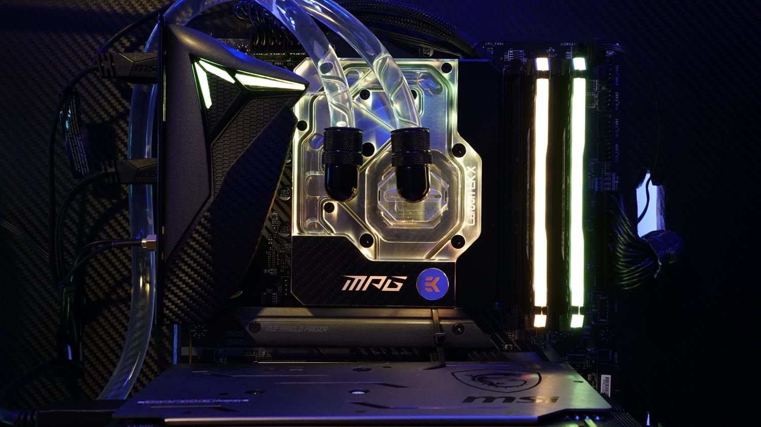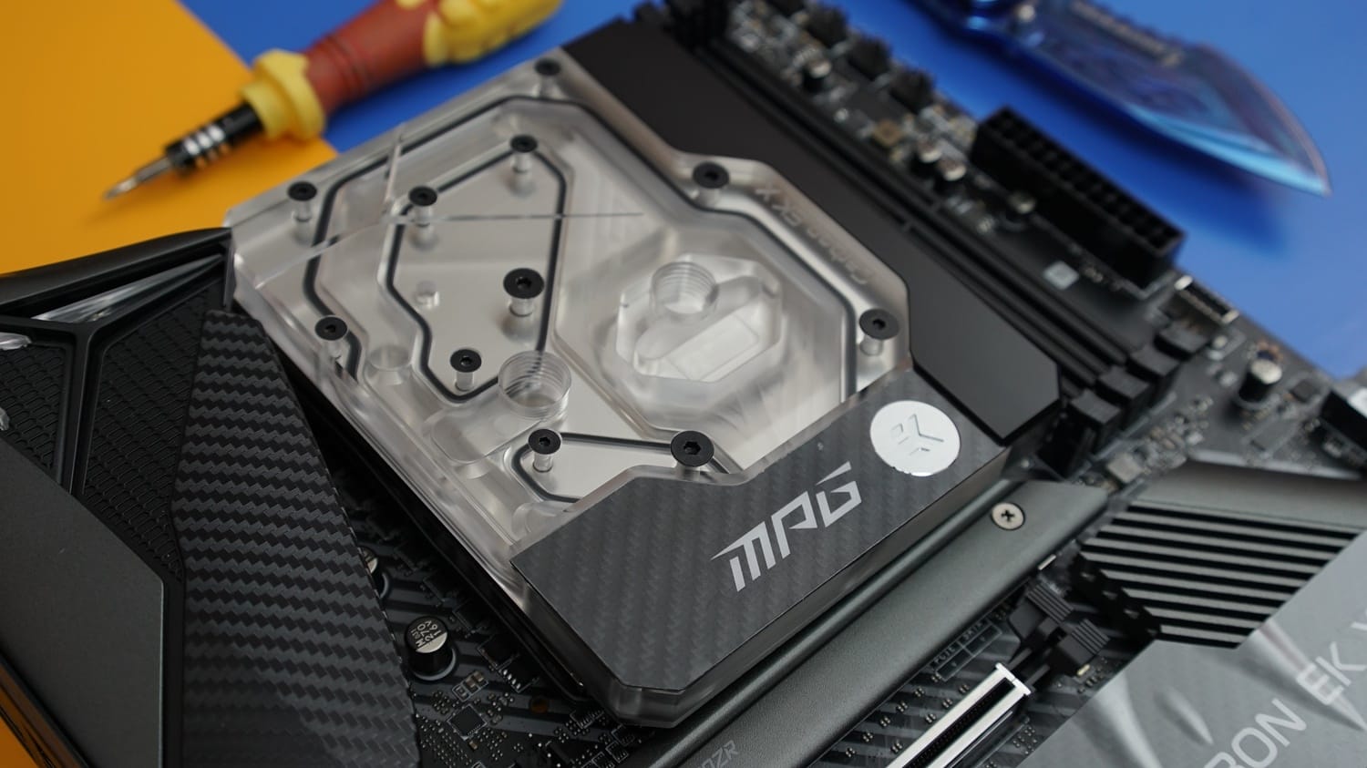 Anakart, son derece yakışıklı bir tasarıma sahip. Siyah renk ve karbon detaylı süslemeler ile birleştirilen RGB aydınlatmalar, anakartın görselliğini en uç seviyeye taşıyor. Teknik detay tarafında ise dikkat çeken bir monoblok parça bulunuyor. Dahili olarak kutuya eklenen bu parça sayesinde hem custom hem de hazır sıvı soğutma sistemleri kullanılabiliyor. Ancak bu parçanın kurulumunu kendiniz yapmanız gerekiyor.
