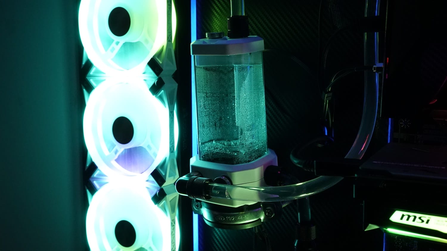Sıvı soğutma parçalarının tamamında RGB aydınlatma desteği mevcut. Ayrıca soğutma sıvısın olarak da Corsair tarafında özel olarak üretilmiş olan XL5 Clear model bir sıvı kullanıyoruz. Sıvı renkli olmadığı için bizlere tamamen şeffaf bir görüntü sunacak.