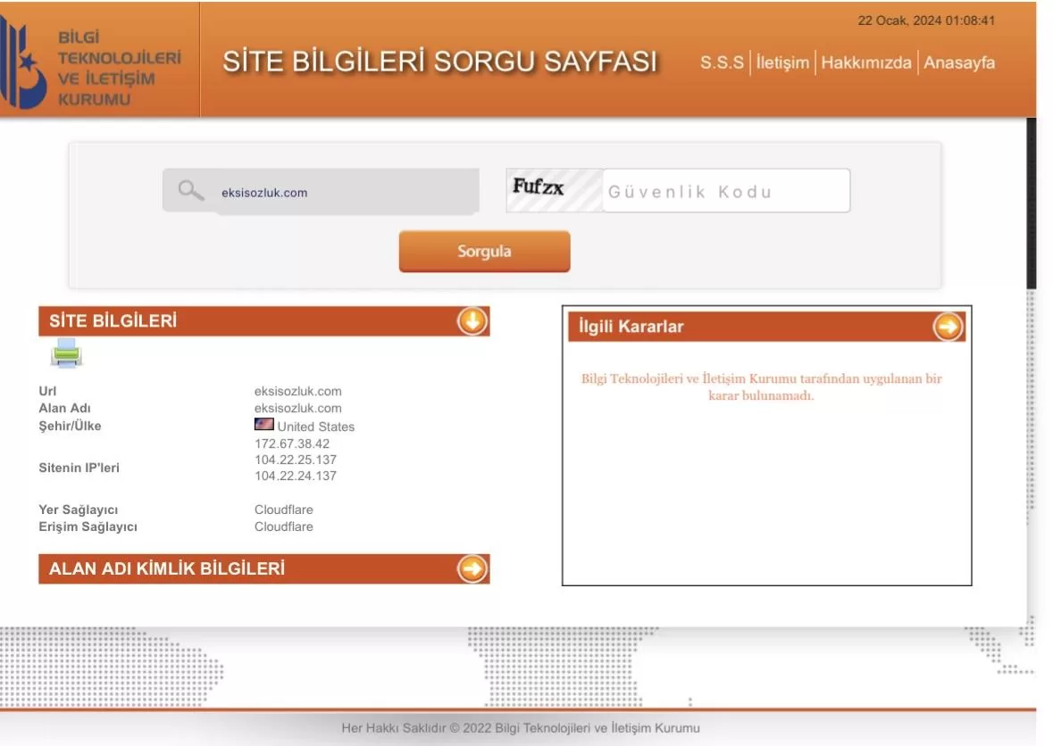 Anayasa Mahkemesi'nin ekşi sözlük lehine verdiği karar ile, kapatma kararını veren mahkemeye tebliğ edilmesi sonrasında karar kaldırılarak BTK tarafından erişime tekrar açıldı. Sorgulama ekranında herhangi bir kararın bulunmadığı görülüyor ve yakın zamanda tekrar ana domaine geçişin yapılacağı tahmin ediliyor.