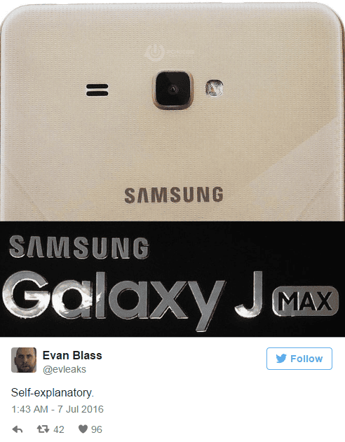 Ekran görüntüsü yayınlanan yeni Galaxy J Max modelinin arka görünümü tipik bir J serisine benziyor. Ek olarak cihaz 7 inçlik dev bir ekrana sahip olduğu için elde tutmak epey bir zor olacak. Zaten günümüz tabletleri ile yarışan akıllı telefonlar da giderek büyümeye devam ediyor.
