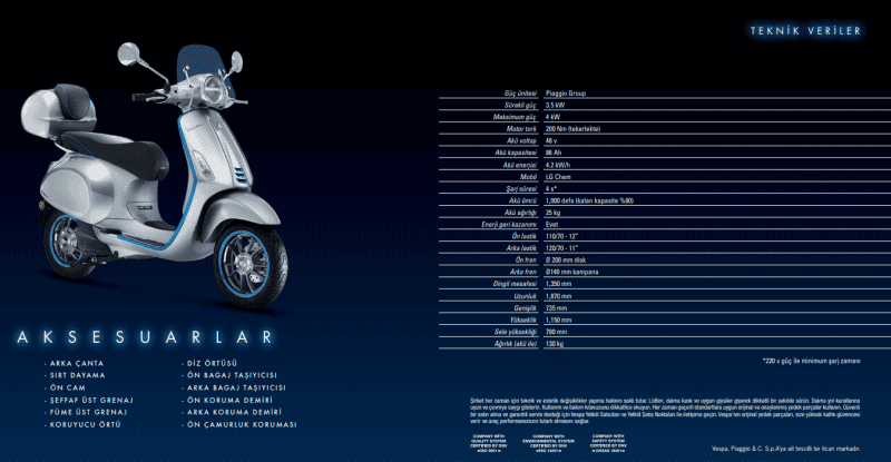 Kolay kullanımı ve ufak tasarımı ile ülkemiz trafiğinde oldukça kullanışlı hale gelen Vespa oldukça tercih edilen bir model olmuştu. Hızı sevmeyen, şehir içi işlerini halletmek isteyen kişilerin başlıca tercihi olan Vespa'da artık elektrikli.