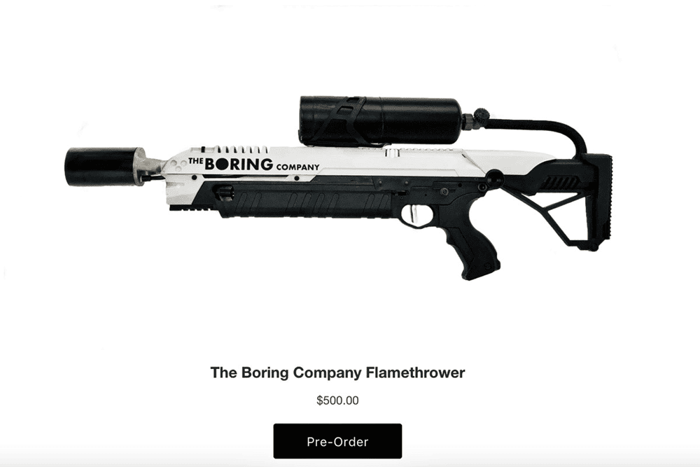 Elon Musk yine yerinde durmadığı gibi, elinde olan çözümleri fırsata çevirmek için sürekli bir şeyler kovalıyor. Aşağıdaki görmüş olduğunuz cihaz da onlardan bir tanesi. Boring Company adı altında geliştirilen yeni alev silahı şimdiden ABD'de yok satmayı başardı. Üstelik cihazın satış fiyatı da indirimli olmamasına rağmen yok satıyor. Peki bu cihazın marifetleri neler? yakından bir göz atalım hocalar;