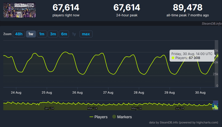 Football Manager 2024 anlık 66 bin oyuncu ile devam eden güncel seri.