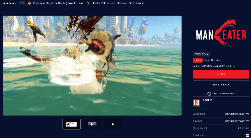 Maneater Nasıl Bir Oyun ve Ne Zamana Kadar Ücretsiz?