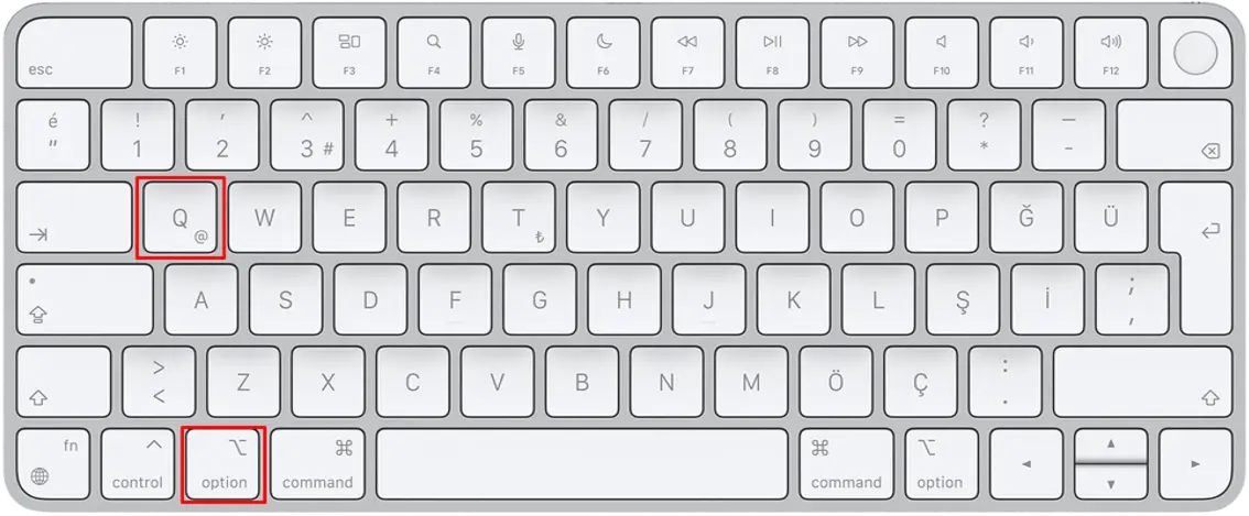 Mac kullanıcıları "@" işaretini yapmak için Option (⌥) tuşuna basılı tutup aynı anda Q tuşuna basın.