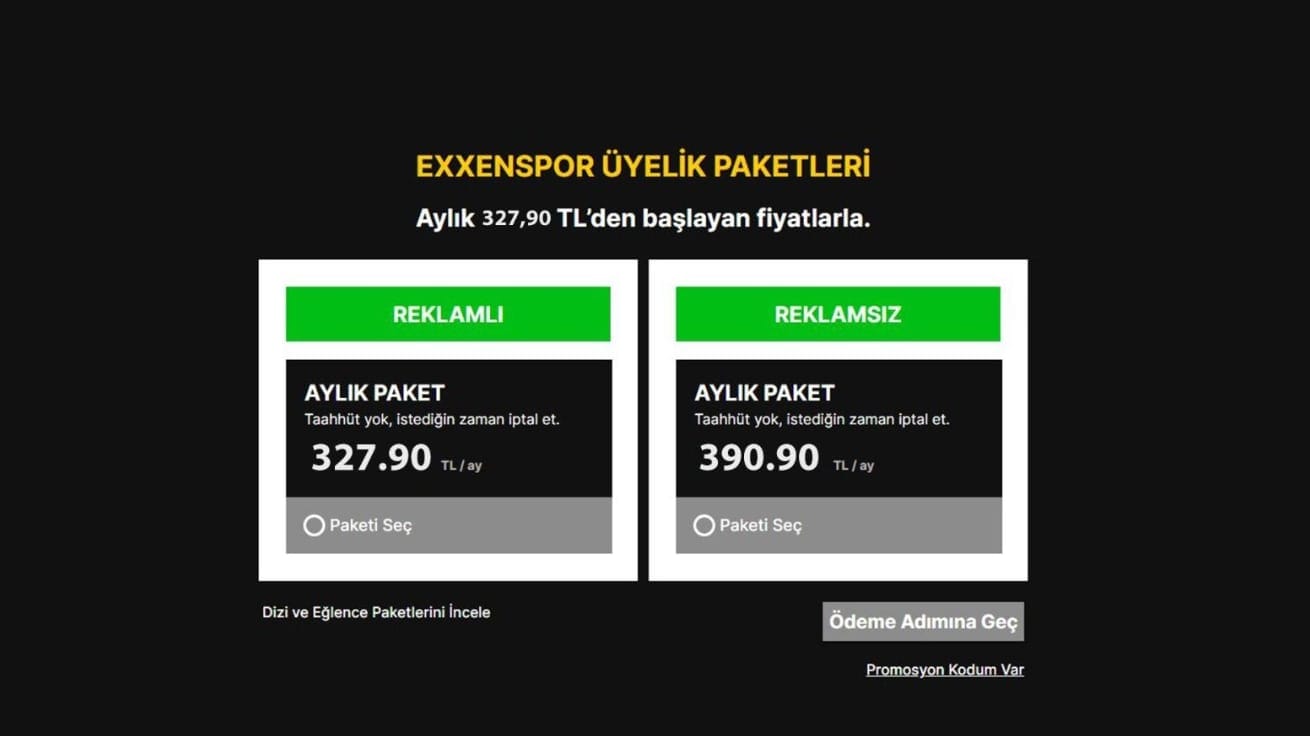 Exxenspor üyelik paketleri biraz daha tuzlu: